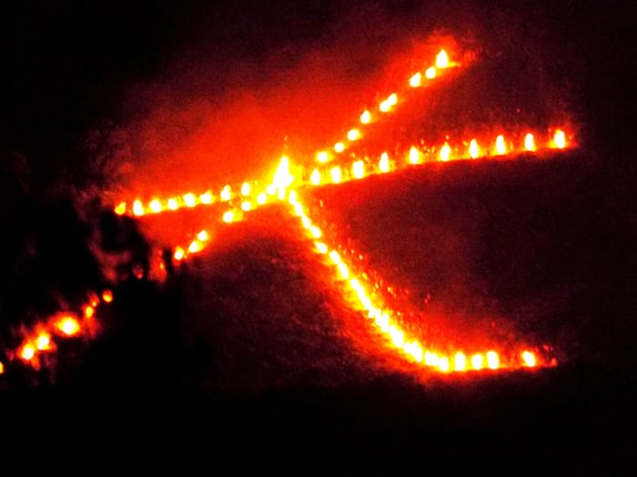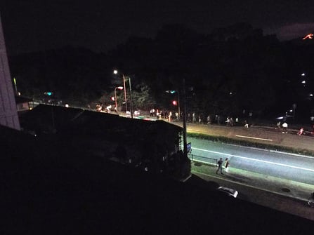真向いは京都御苑で、その向こう側に「大」が見えます。