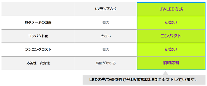 【参考】UV-LED方式とUVランプ方式の比較