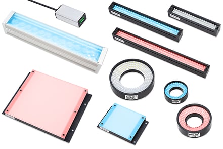 照明の形状は、バータイプ、リングタイプ、フラットタイプ、大型バータイプの4つで、発光色は赤・白・青をご用意しており、お客様の検査環境に応じてお選びいただくことが出来ます。これにより、シンプルかつスピーディーに画像処理検査をスタートしたいというご要望にお応えします。