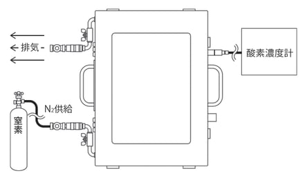 窒素パージボックスの設置で、酸素の濃度を調整