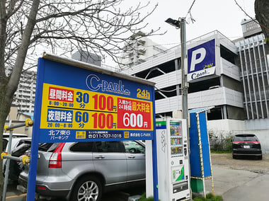 お車にてご来社の場合は、建物西側にあるコインパーキングをご利用ください。