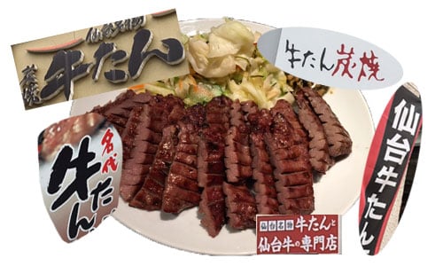 さすが仙台、あちらこちらに「牛タン」の文字が!