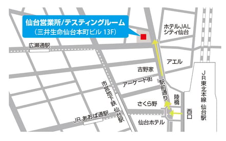 ・JR仙台駅西口、地下鉄仙台駅、地下鉄広瀬通駅から徒歩3分と好立地