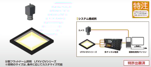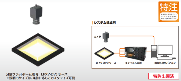 ラインスキャンカメラでの正反射観察に必要な機器設置の省スペース化を実現。