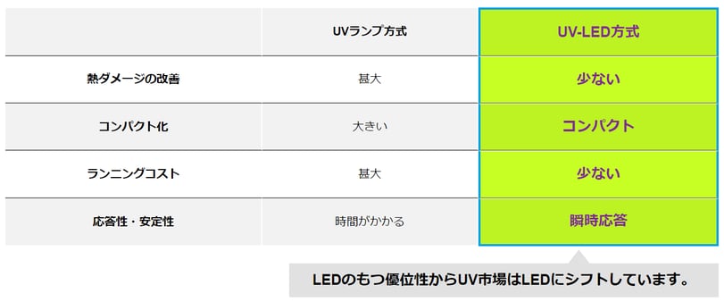 UV-LED方式とUVランプ方式の比較