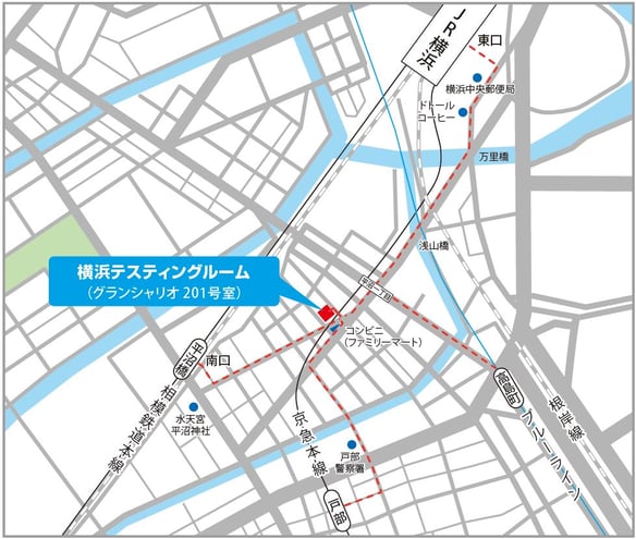 JR横浜駅 東口より徒歩9分(東口を出て郵便局方面へ、万里橋を渡って直進)